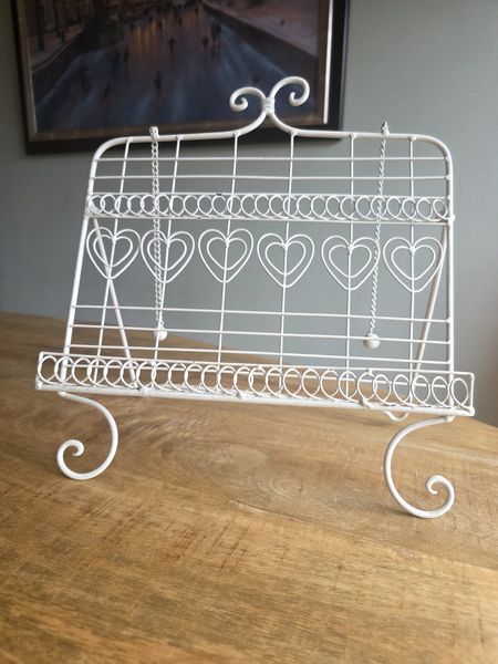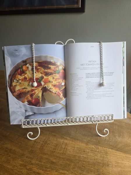 Deze kookboekhouder is niet vintage, maar heeft wel een brocante uitstraling.