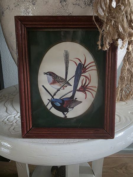 Mooi vintage houten lijstje met afbeelding van vogels.