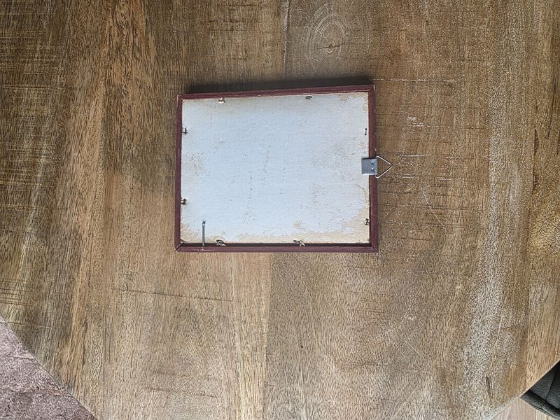 Kleuren: het lijstje is donkerbruin en het passe-partout is donkergroen