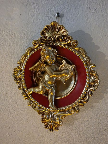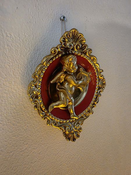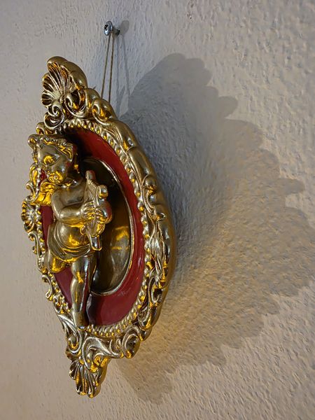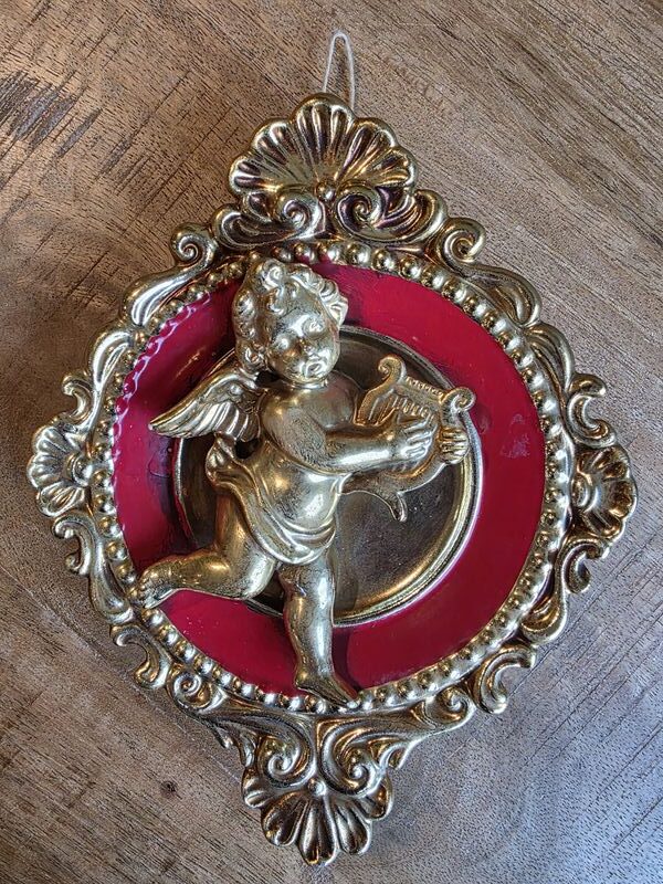 Schitterend vintage engeltje om aan de muur op te hangen.