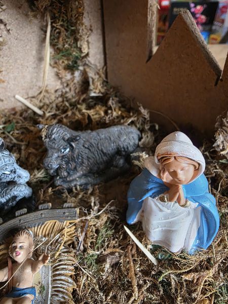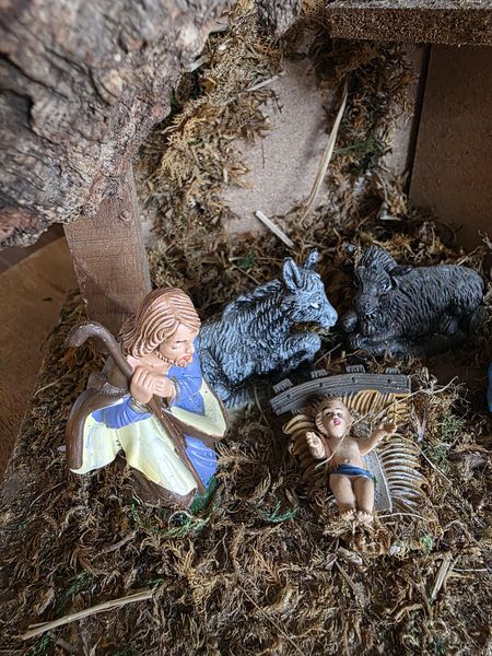 Leuke kleine vintage nostalgische kerststal uit Italië.