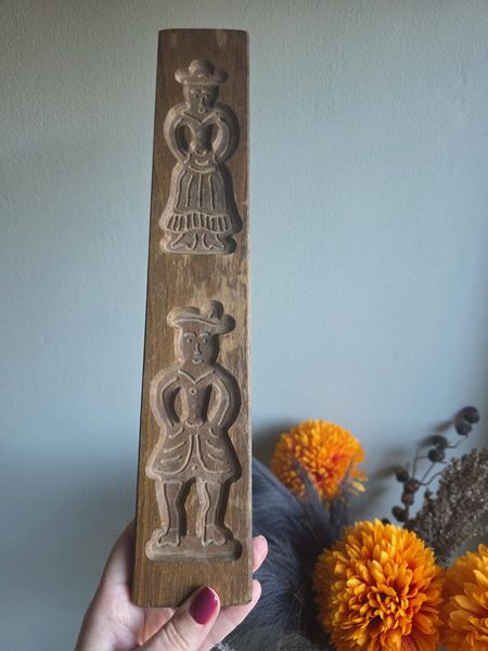 Originele vintage speculaasplank. Handgesneden uit massief hout en voorzien van traditionele figuren – perfect om zelf speculaas te bakken of als decoratief item in je keuken.