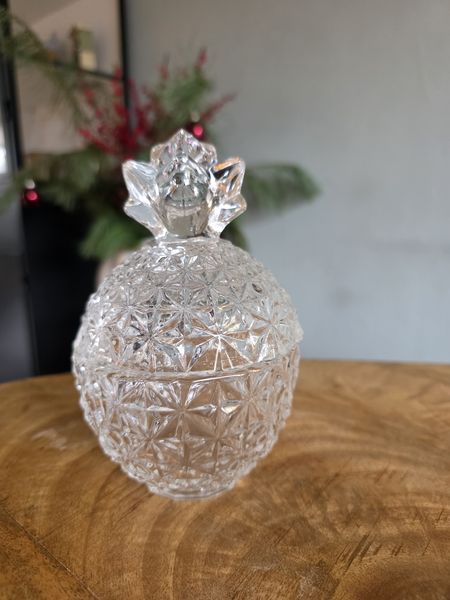 Mooie vintage kristallen bonbonschaal met deksel in de vorm van een ananas.