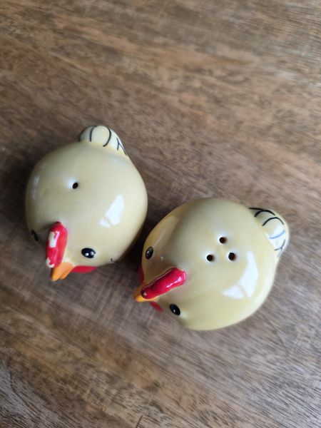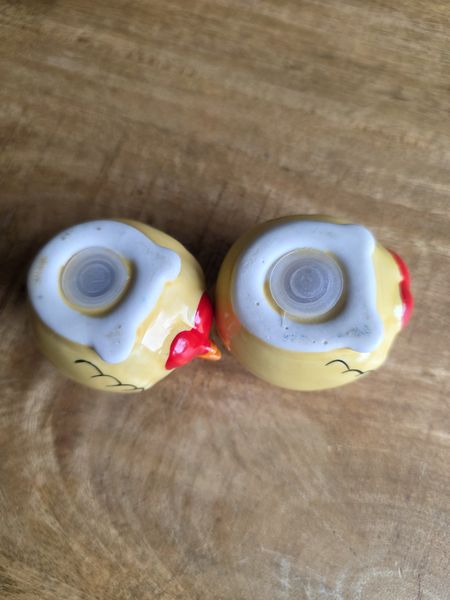 Leuk vintage peper- en zoutstelletje in de vorm van kipjes.