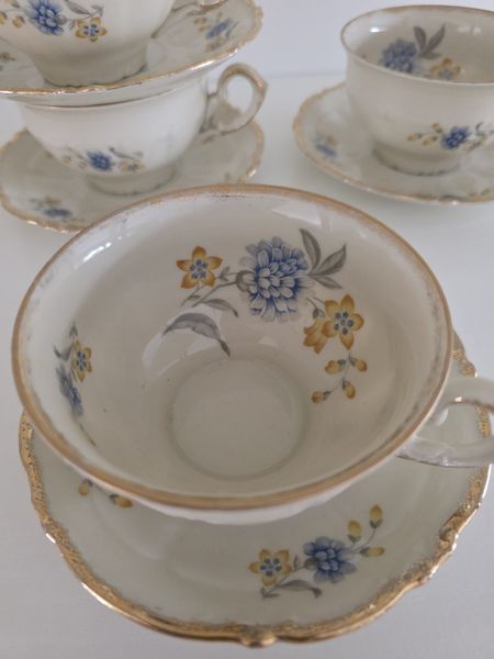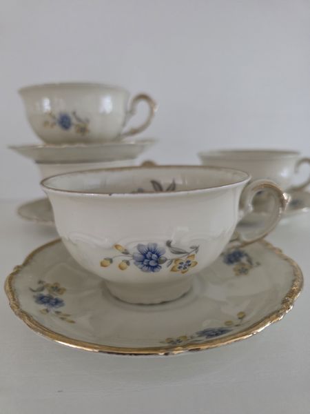 Een vintage set kop en schotels van het merk J.G.& Z. Handelsmerk. Heerlijk om je kopje thee uit te drinken.