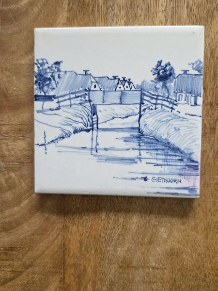 Vintage blauw-wit tegeltje van Giethoorn.