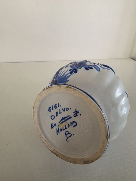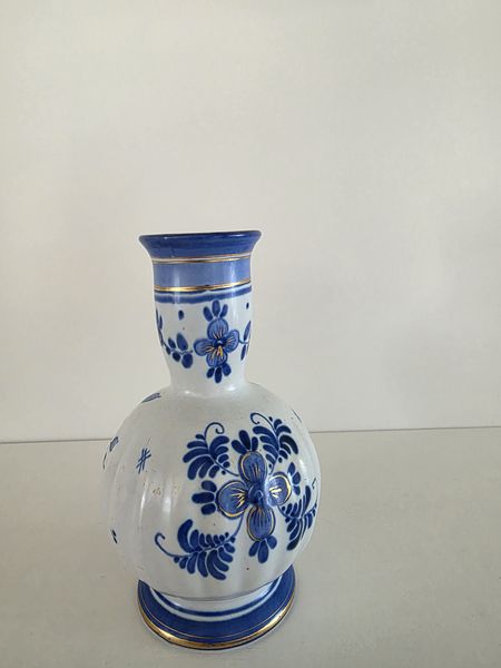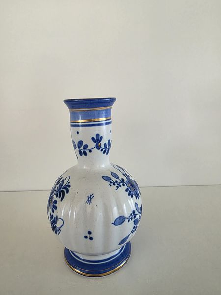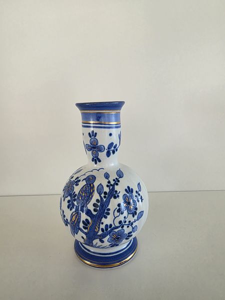 Prachtig vintage blauwwit handbeschilderd vaasje van het merk Delvo Holland.